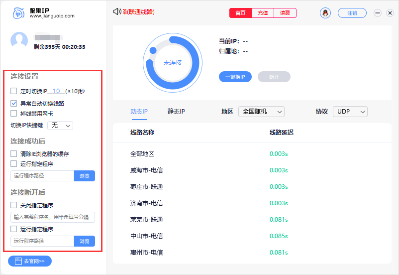 连接断开后关闭指定程序:担心ip掉线后导致自己工作内容变回原ip可勾选